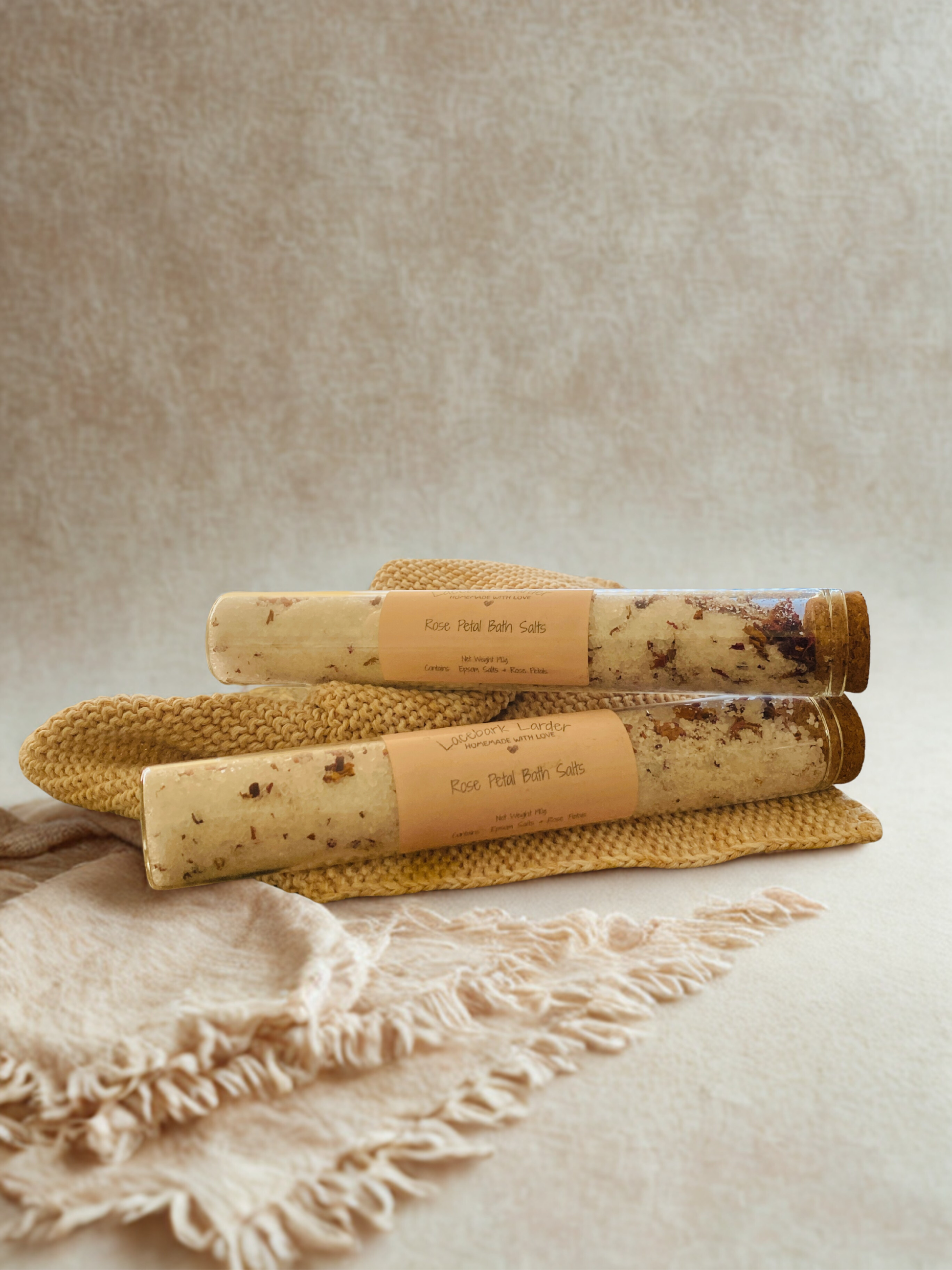 Slow down and soak it all in with our Lacebark Larder Rose Petal Bath Salts.